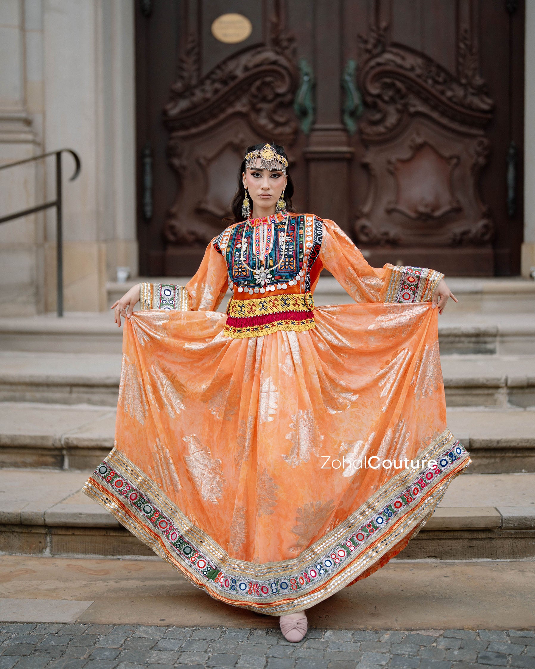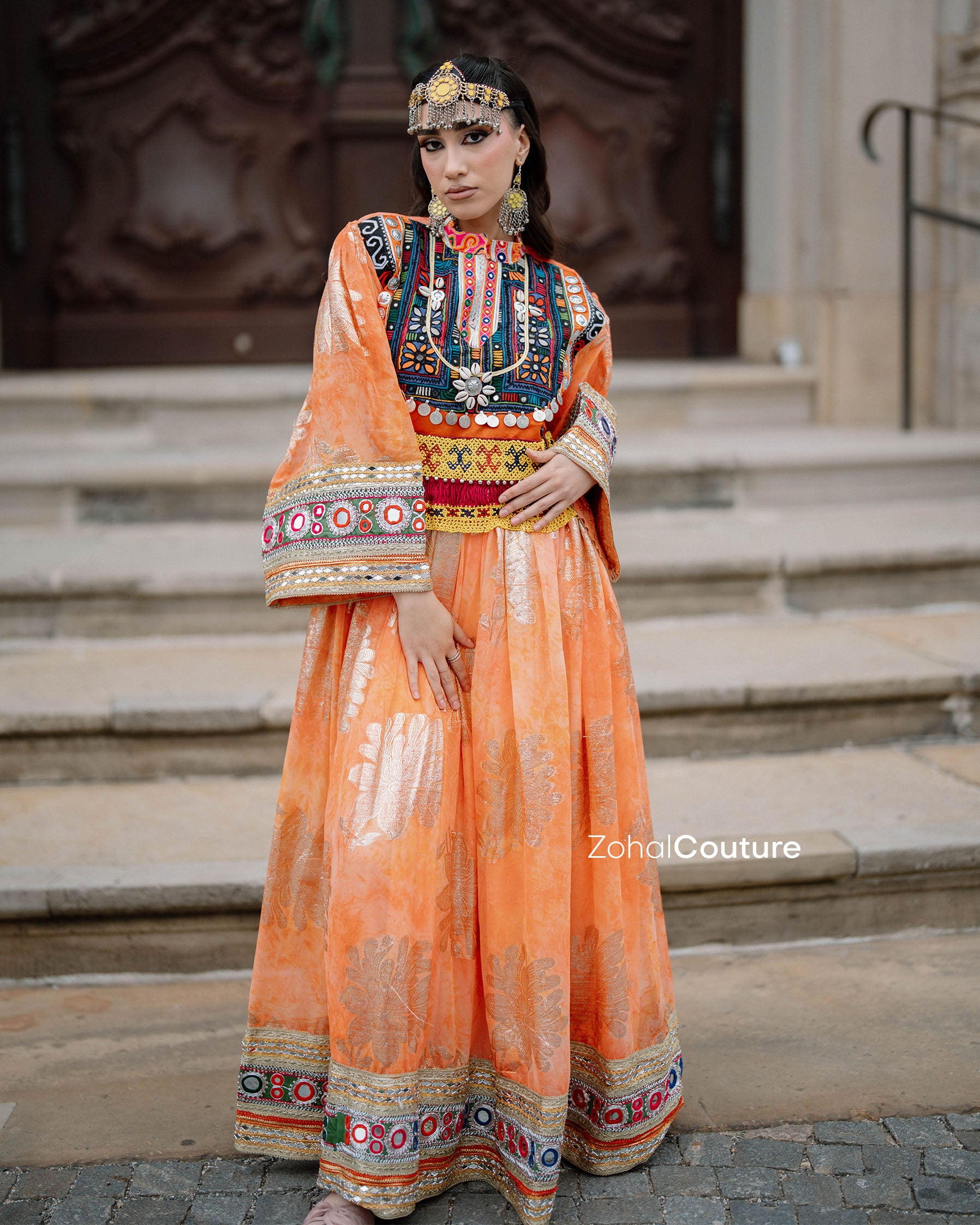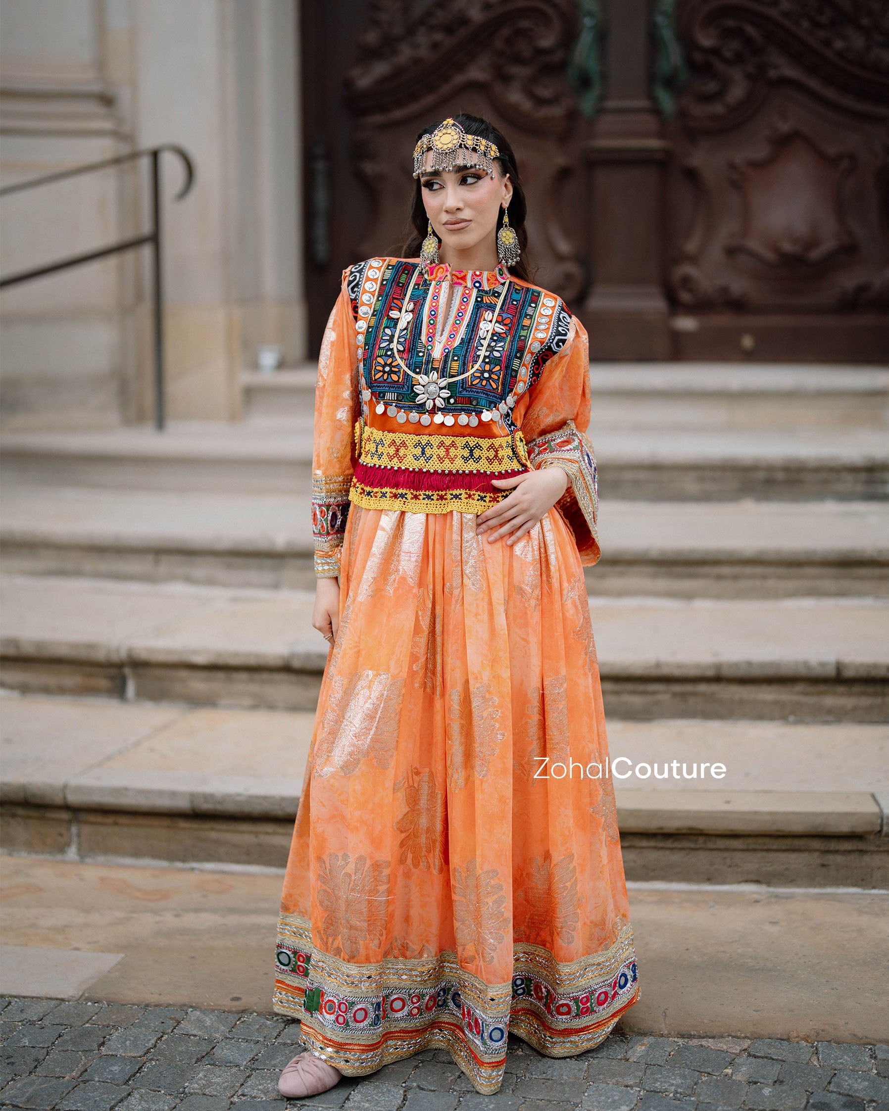 ✔ Hand-embroidered bodice with Afghan-inspired details